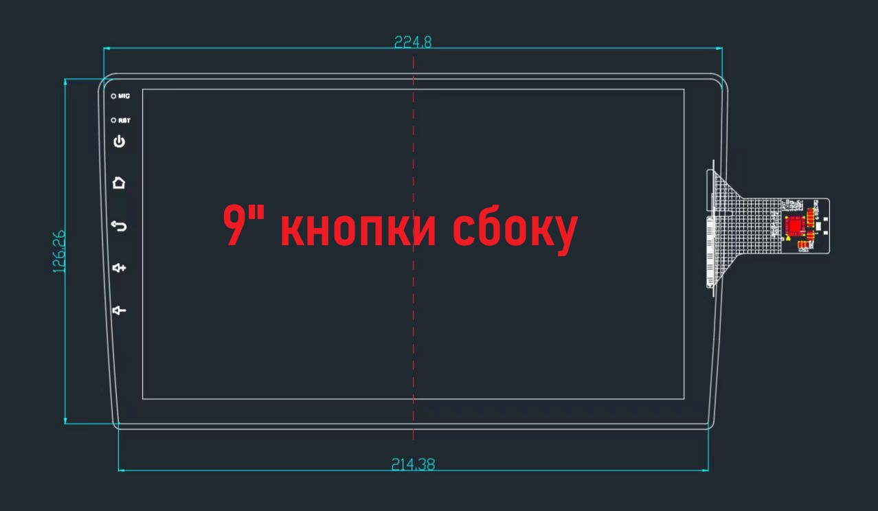 Защитная гидрогелевая глянцевая плёнка для магнитолы RedPower с экраном 9 дюймов с сенсорными кнопками слева:
